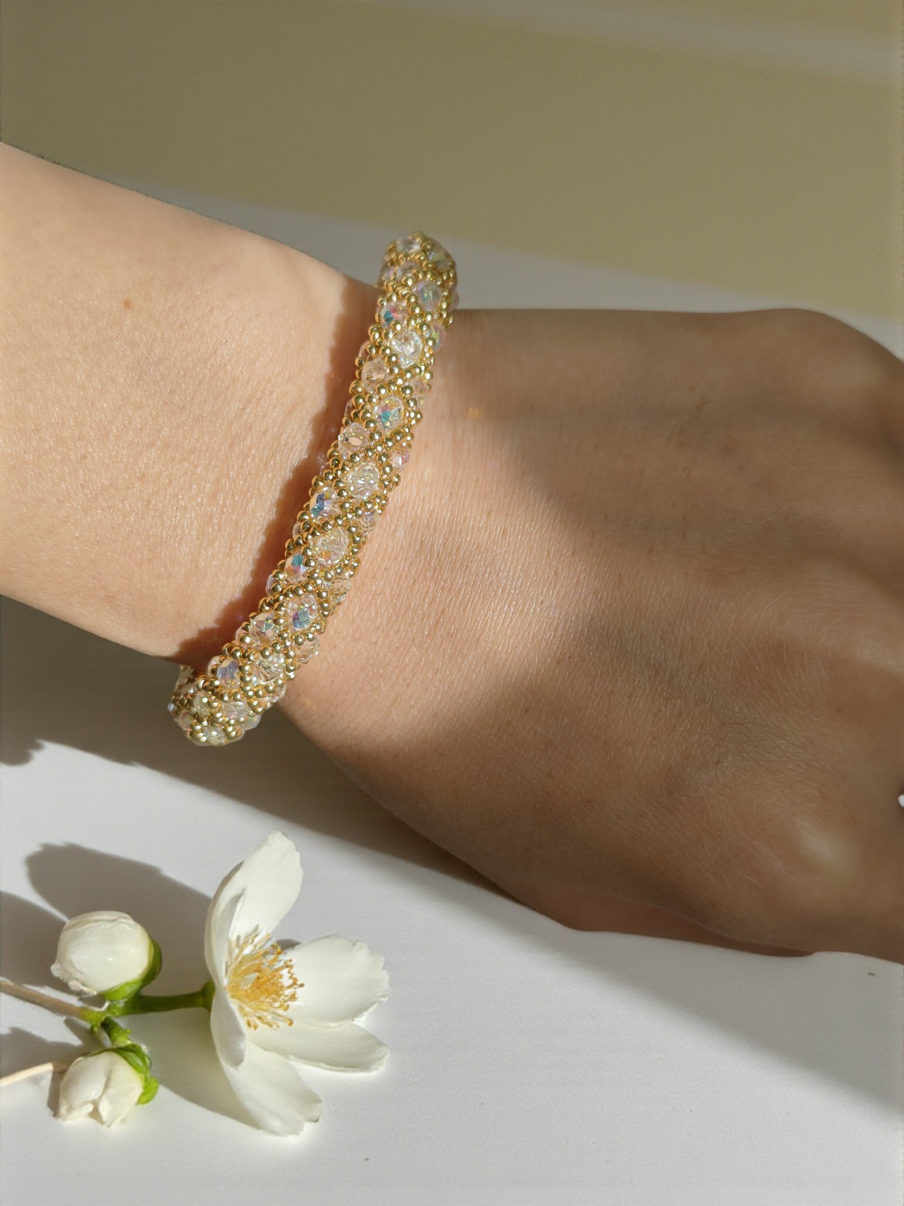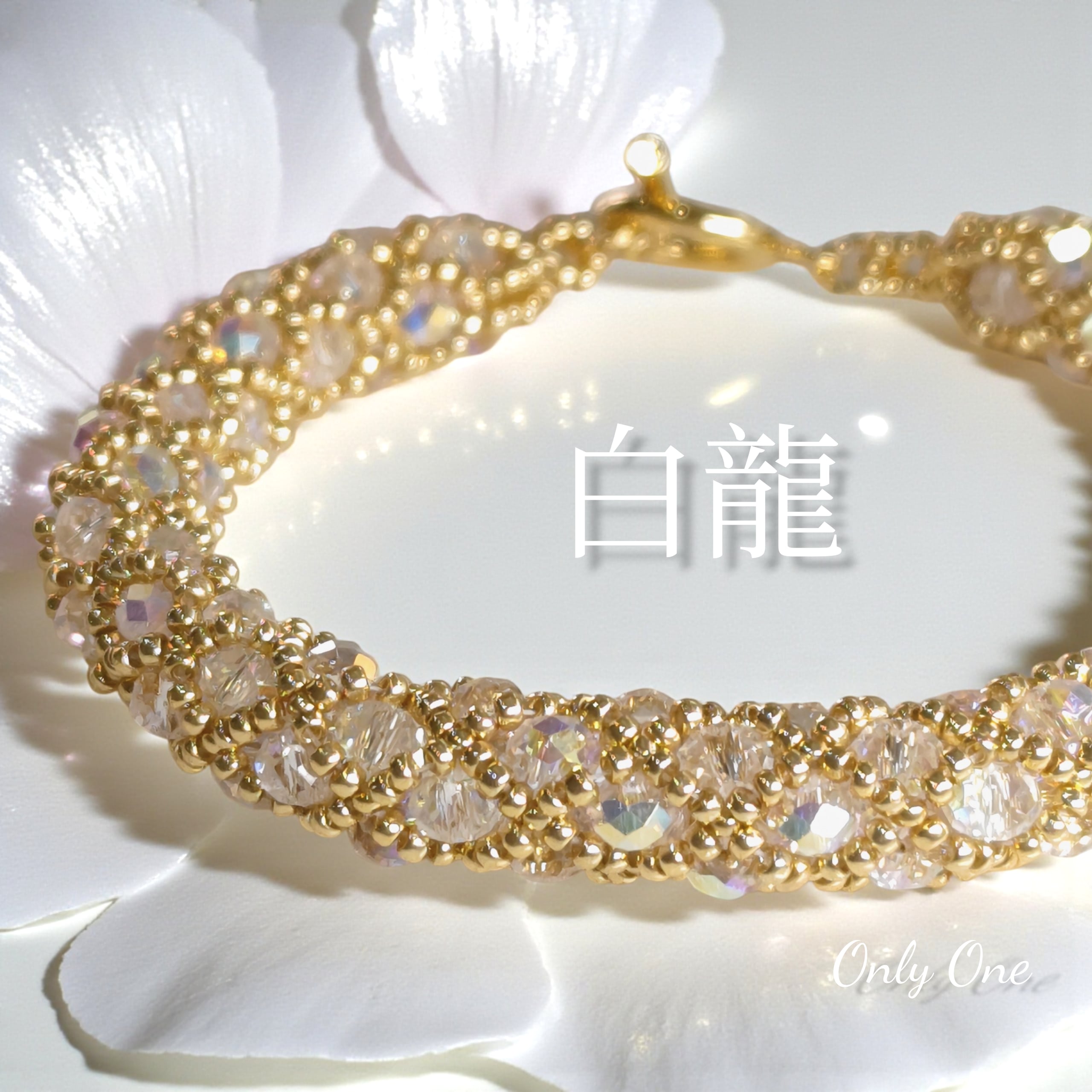 龍の鱗【白龍】クリア/オーロラ加工 ブレスレット 金属アレルギー対応金具 マンテル金具 龍神様 龍 幸運 お守り 運気 開運 ゴールド