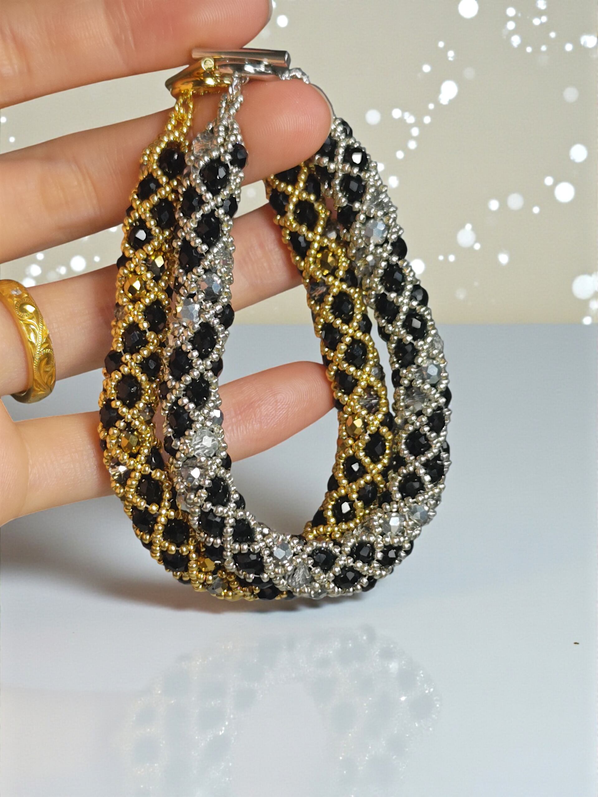 龍の鱗【黒龍】昇り龍 ゴールドライン ブレスレット 金属アレルギー対応金具 龍 幸運 お守り 運気上昇 開運