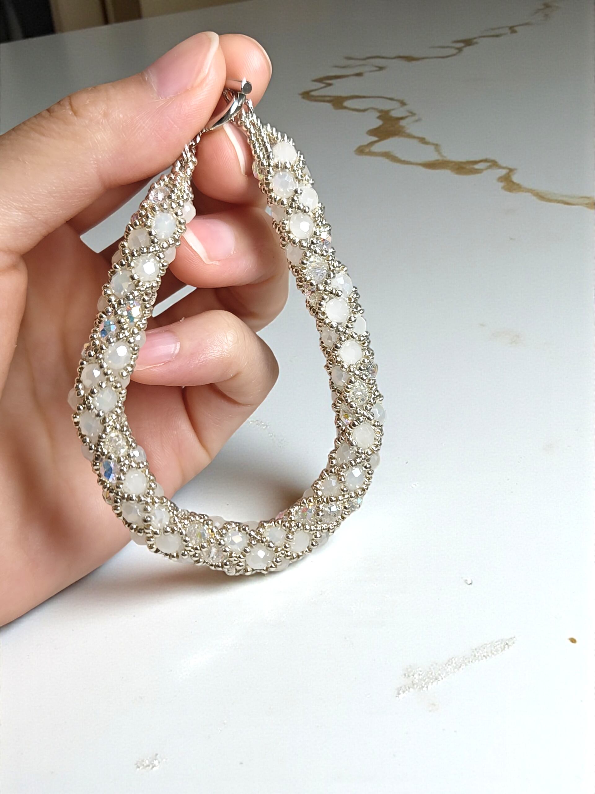 ◉防水などではありませんので、水濡れなどには、お気をつけ下さい。強く引っ張ったりすると糸が切れる場合がありますので、お控え下さい。