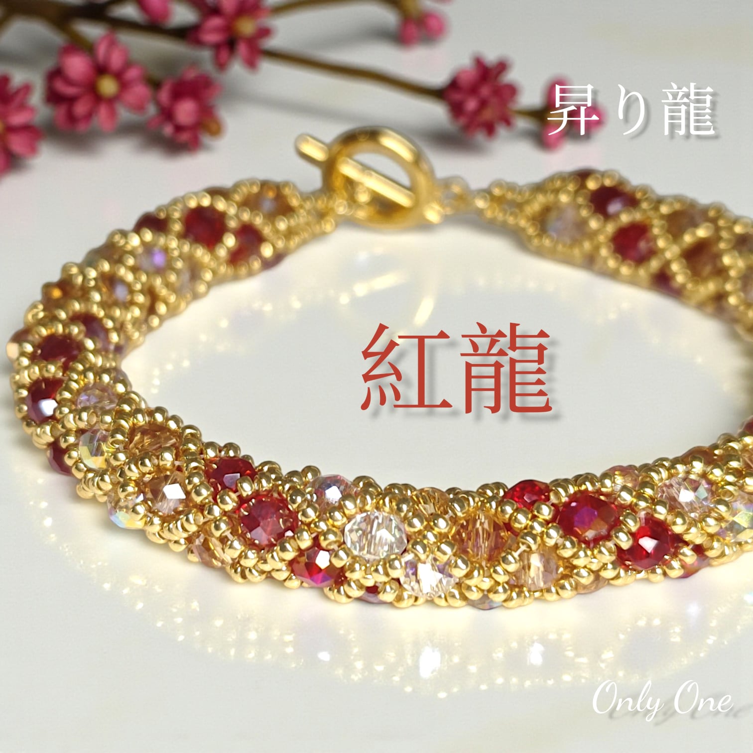 龍の鱗【紅龍】赤 昇り龍 ブレスレット 金属アレルギー対応金具 龍 幸運 お守り 運気上昇 開運