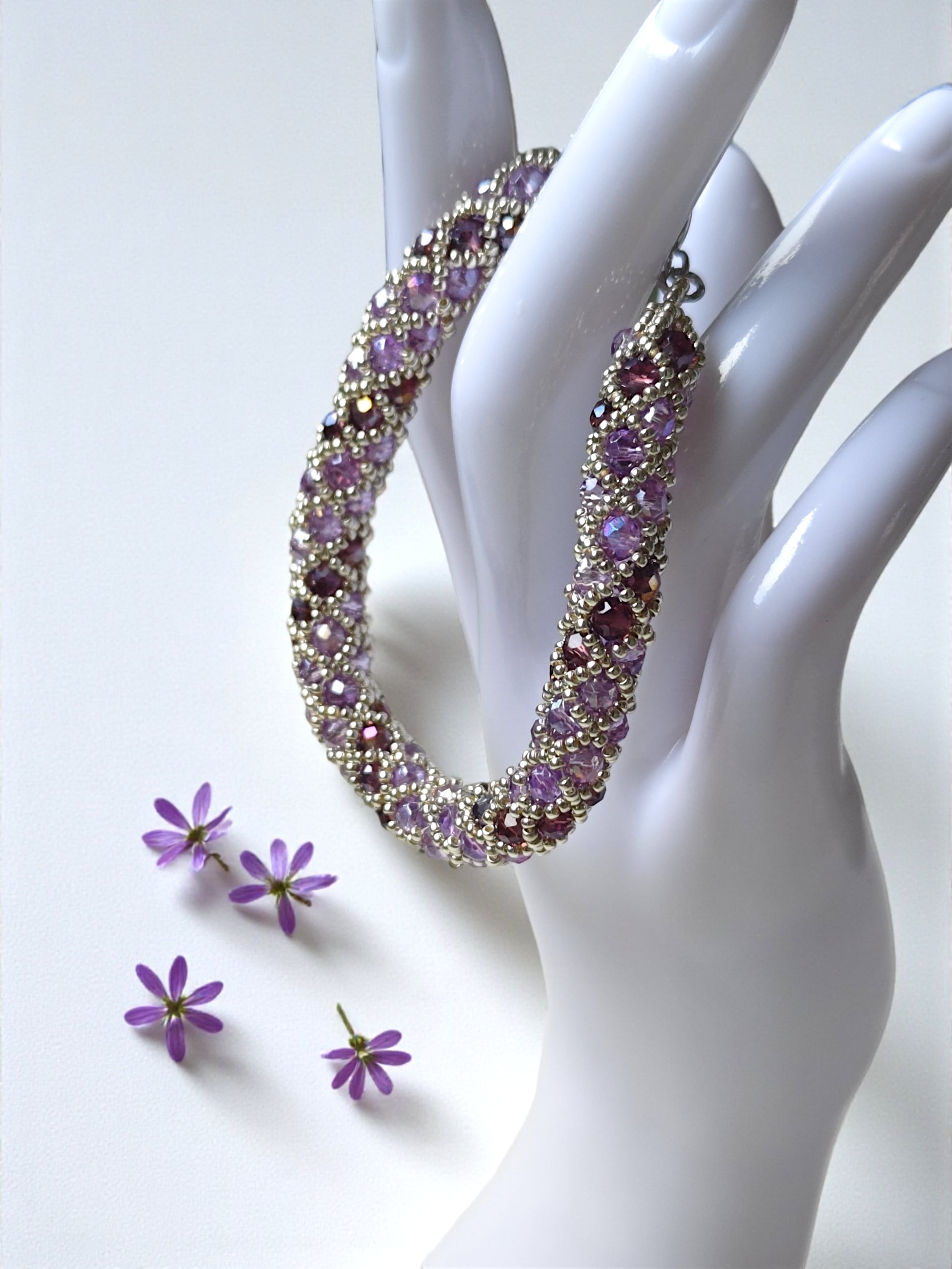 ※きっちり編んでいますので、使用上の問題はありませんが、ビーズの自体が少し動くようになっておりますので、全長の長さが3mmほど前後いたします。ご了承ください。