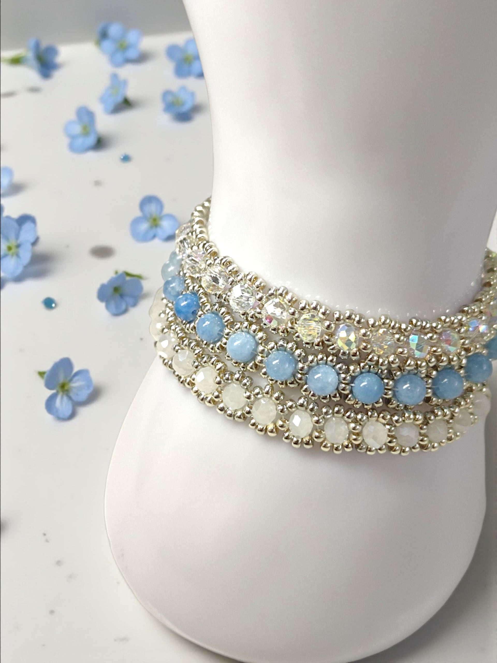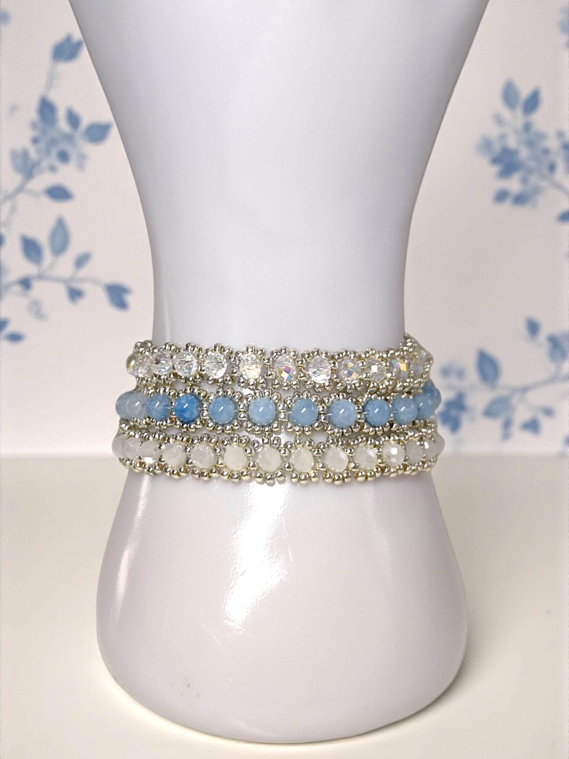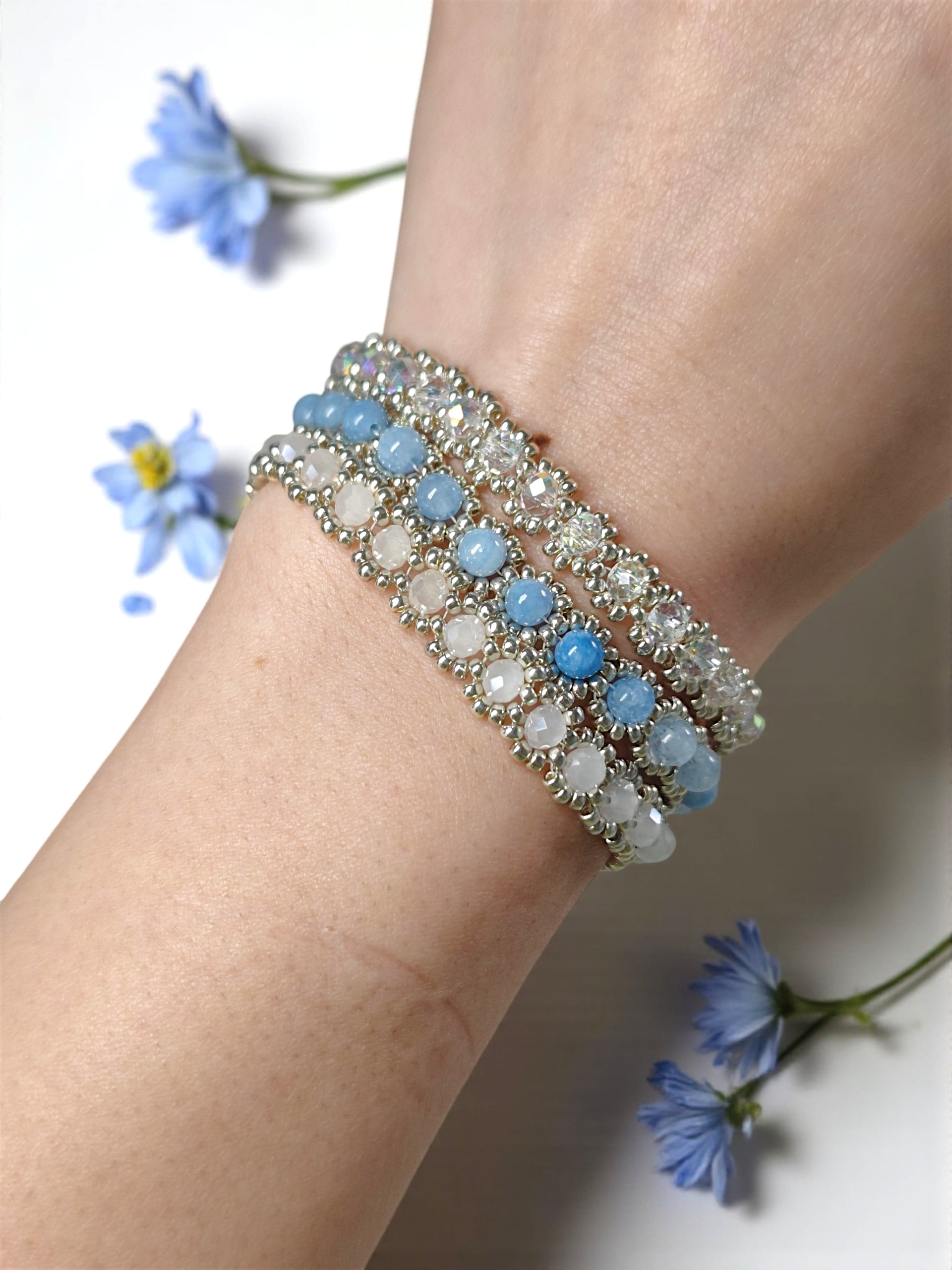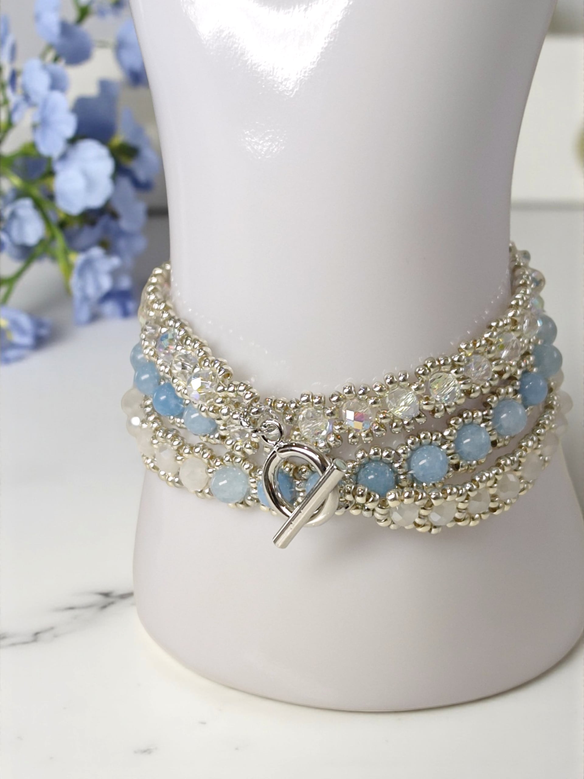 水龍【3月誕生石カラー】シルバー アクアマリン 3連ブレス ブレスレット 金属アレルギー対応金具 龍 幸運 お守り 運気上昇 開運