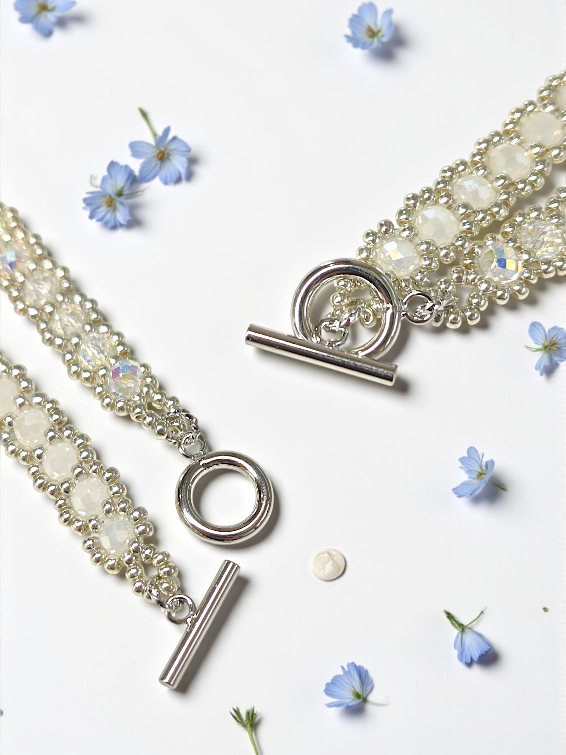 ガラスビーズ(オーロラクリア、ホワイトオパール)