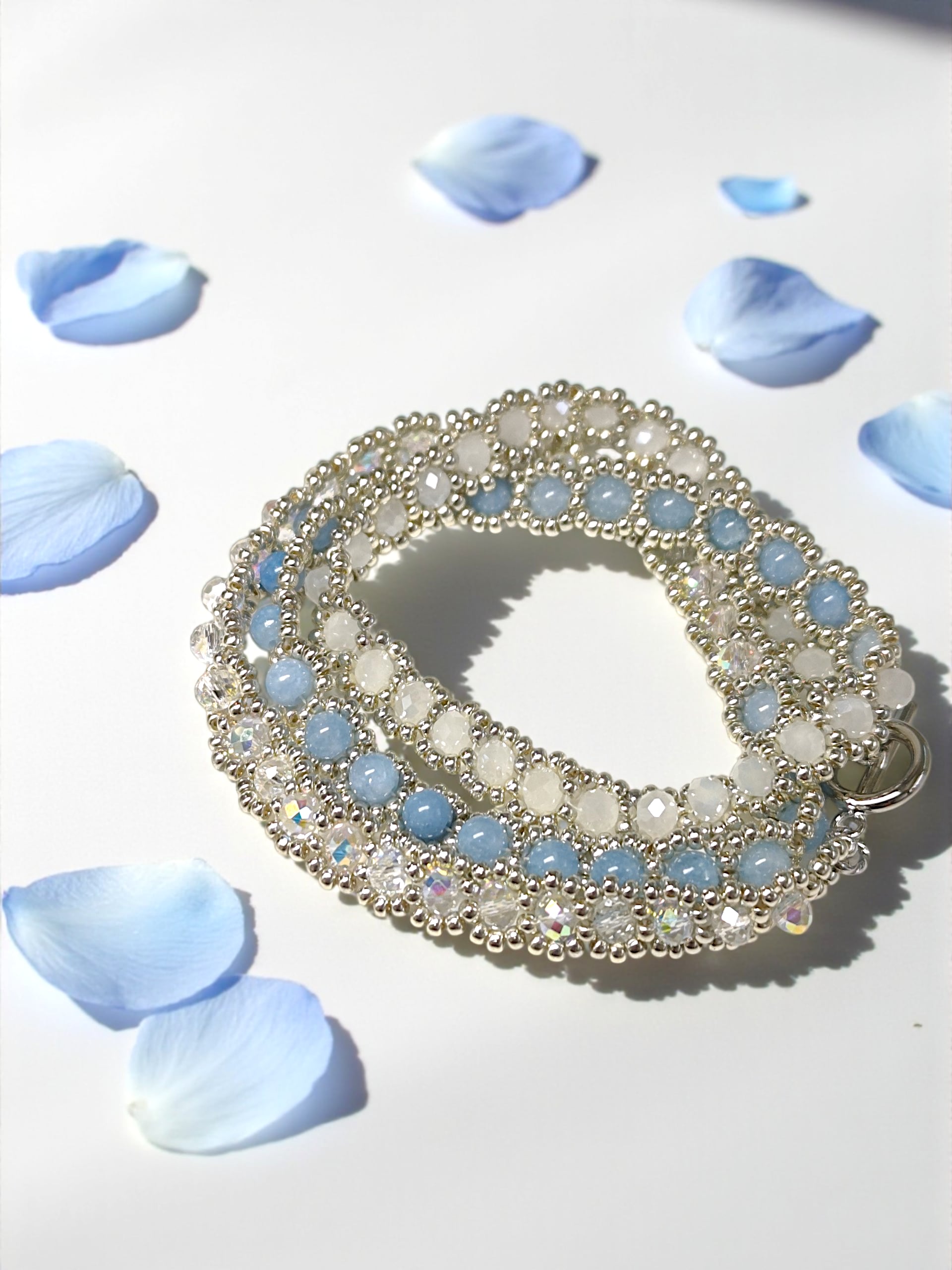 ※きっちり編んでいますので、使用上の問題はありませんが、ビーズの自体が少し動くように遊びをなっております。ご了承ください。