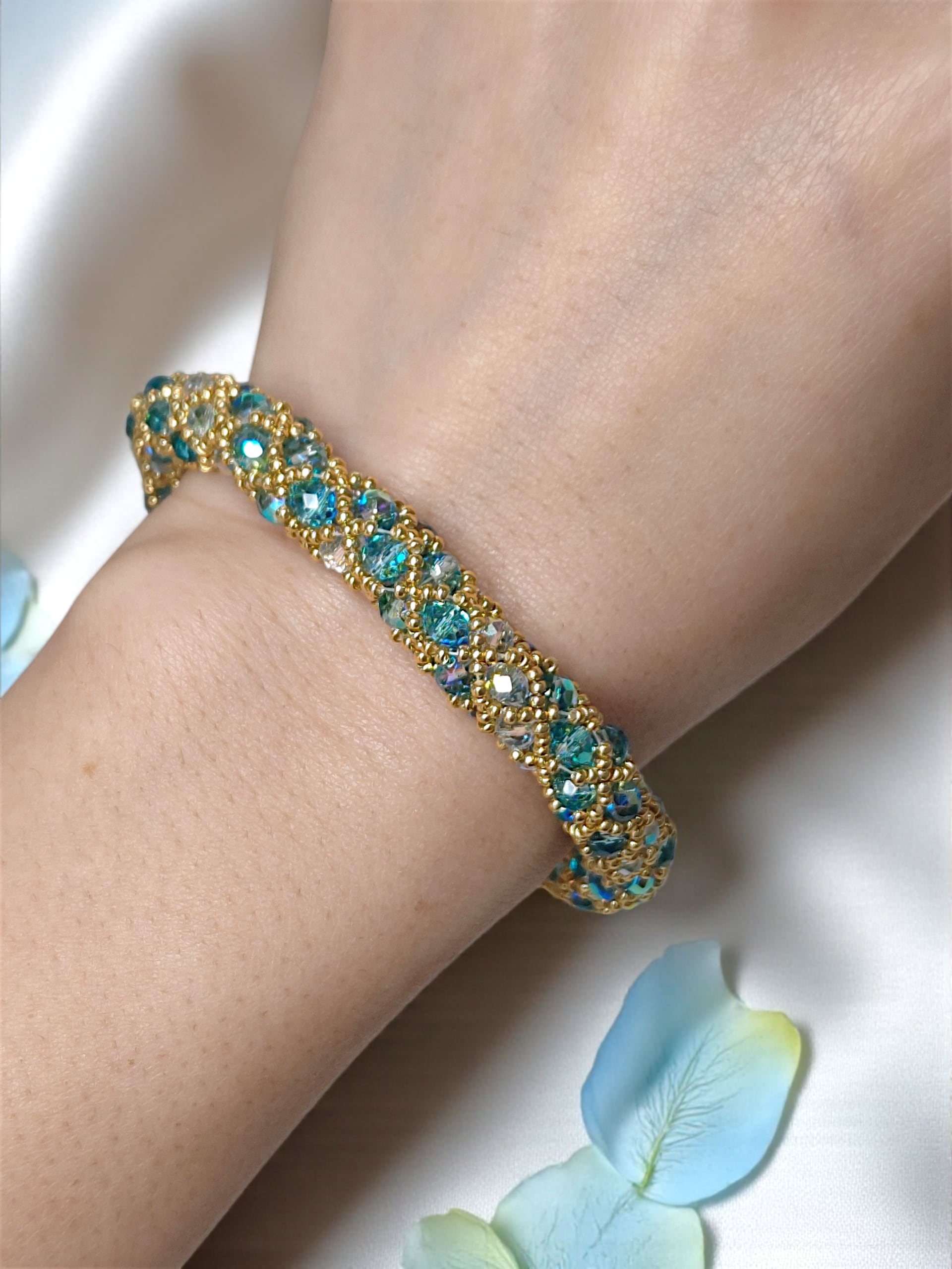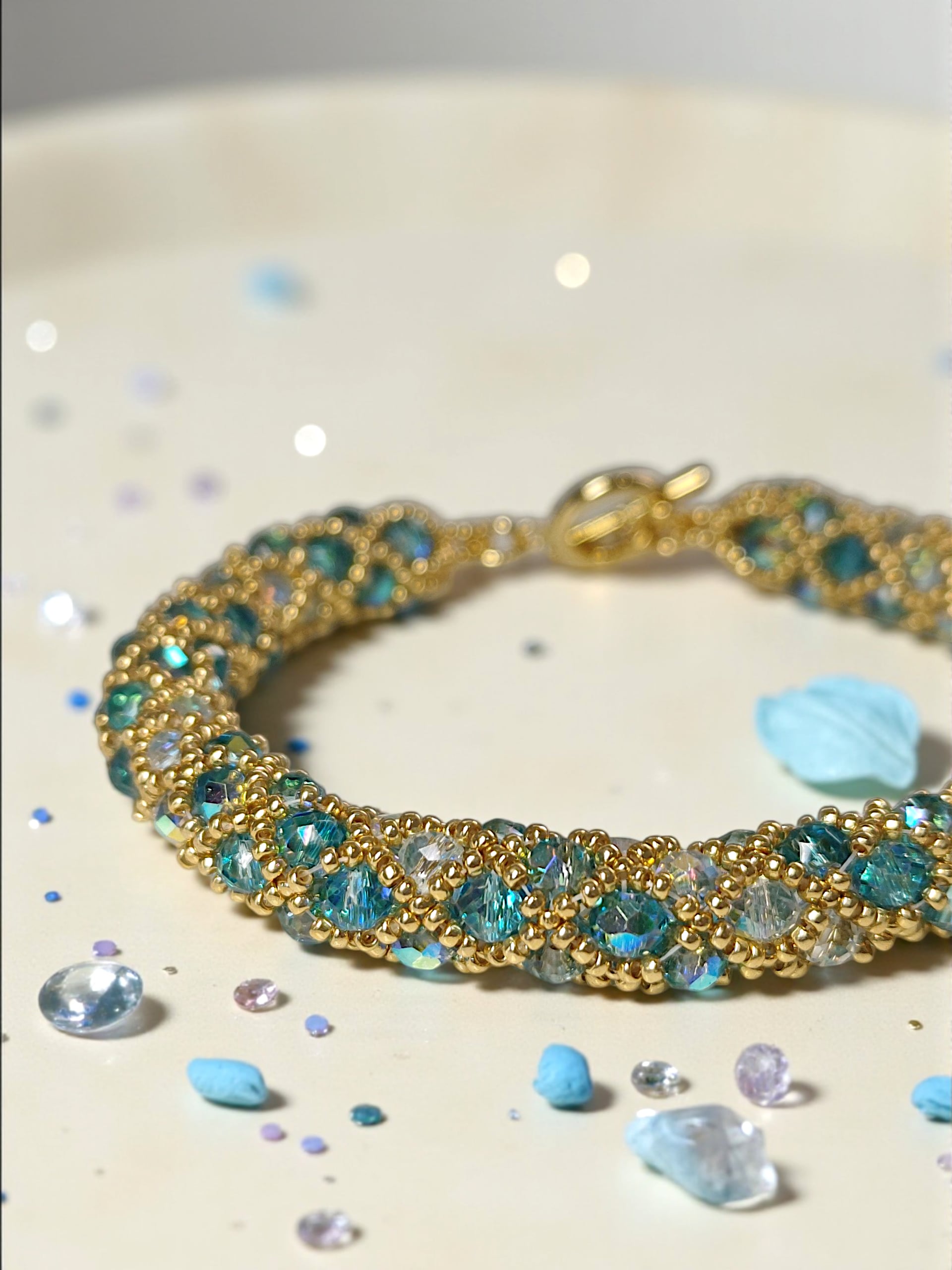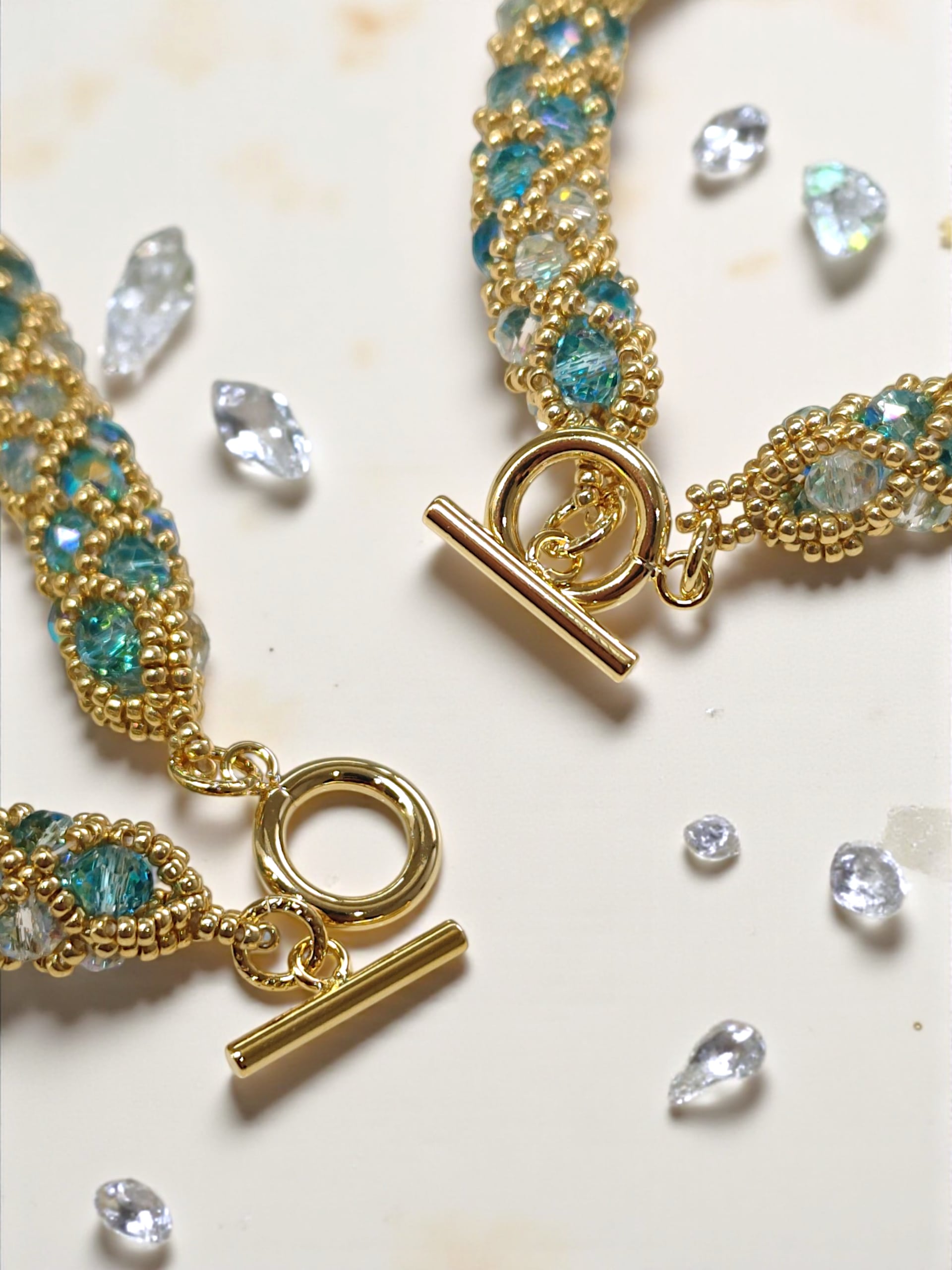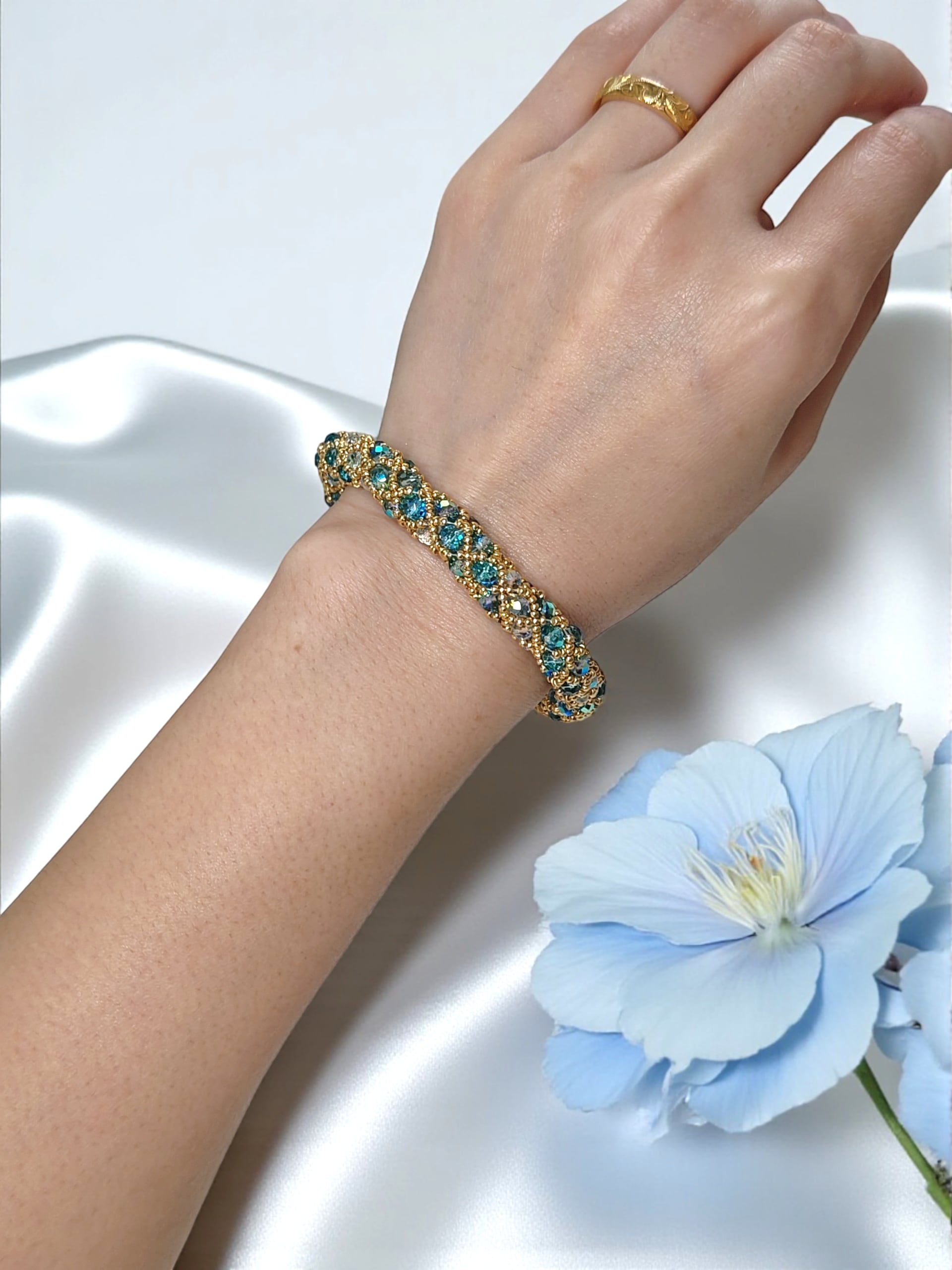 ※きっちり編んでいますので、使用上の問題はありませんが、ビーズの自体が少し動くようになっておりますので、全長の長さが少しほど前後いたします。ご了承ください。