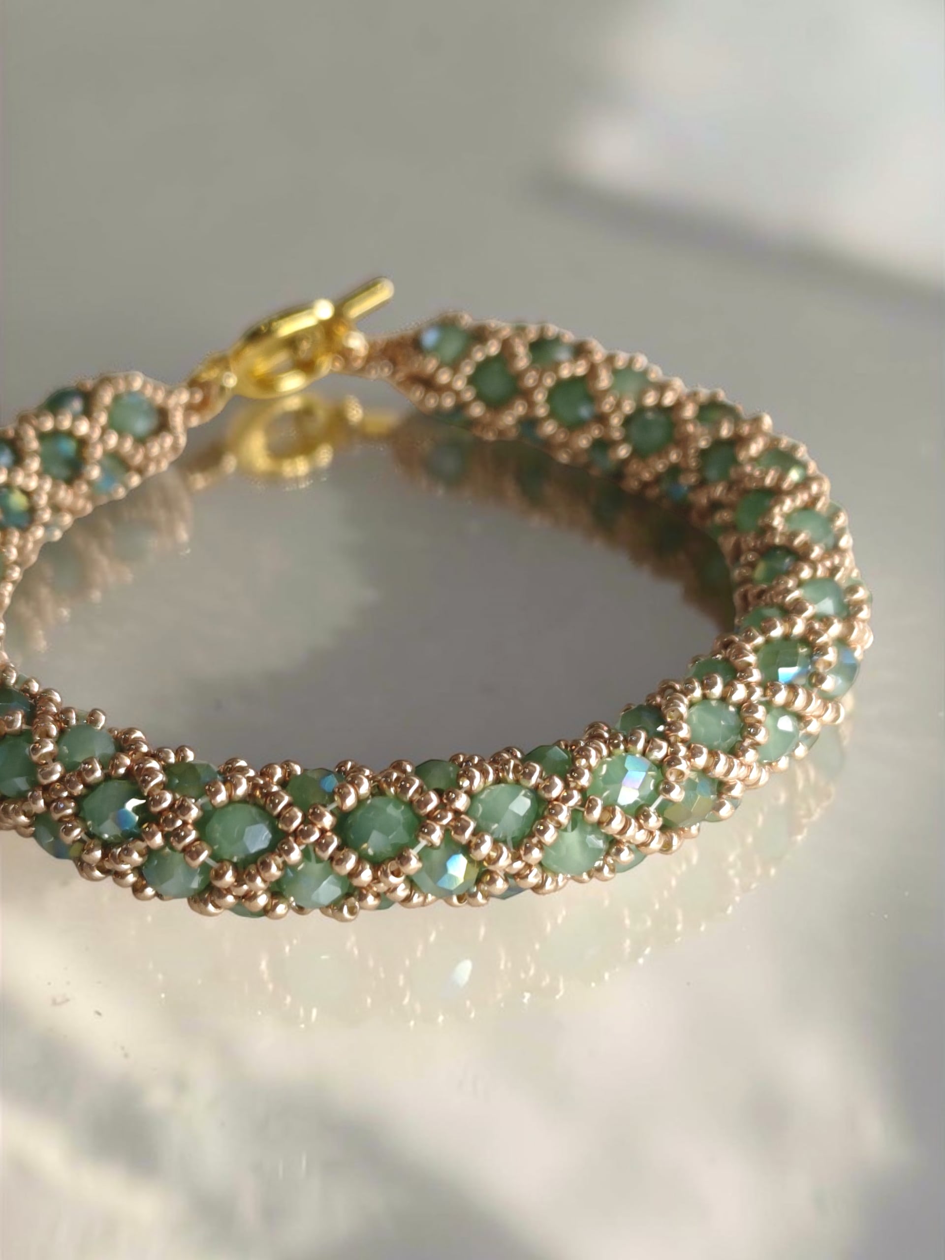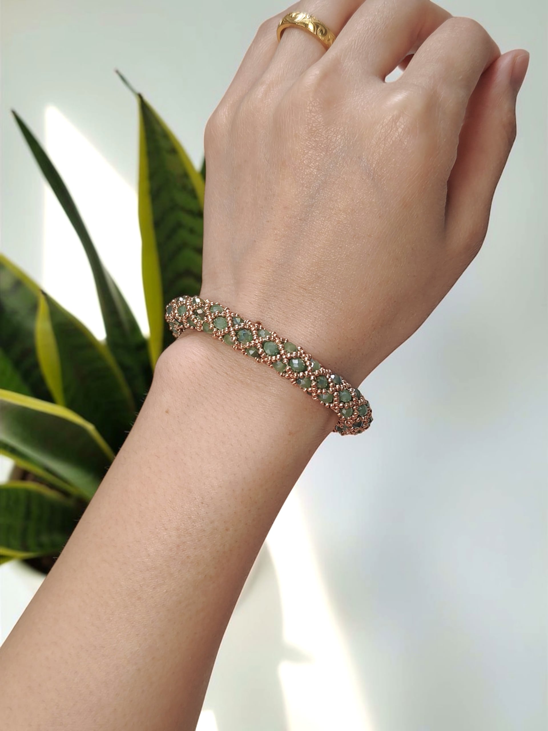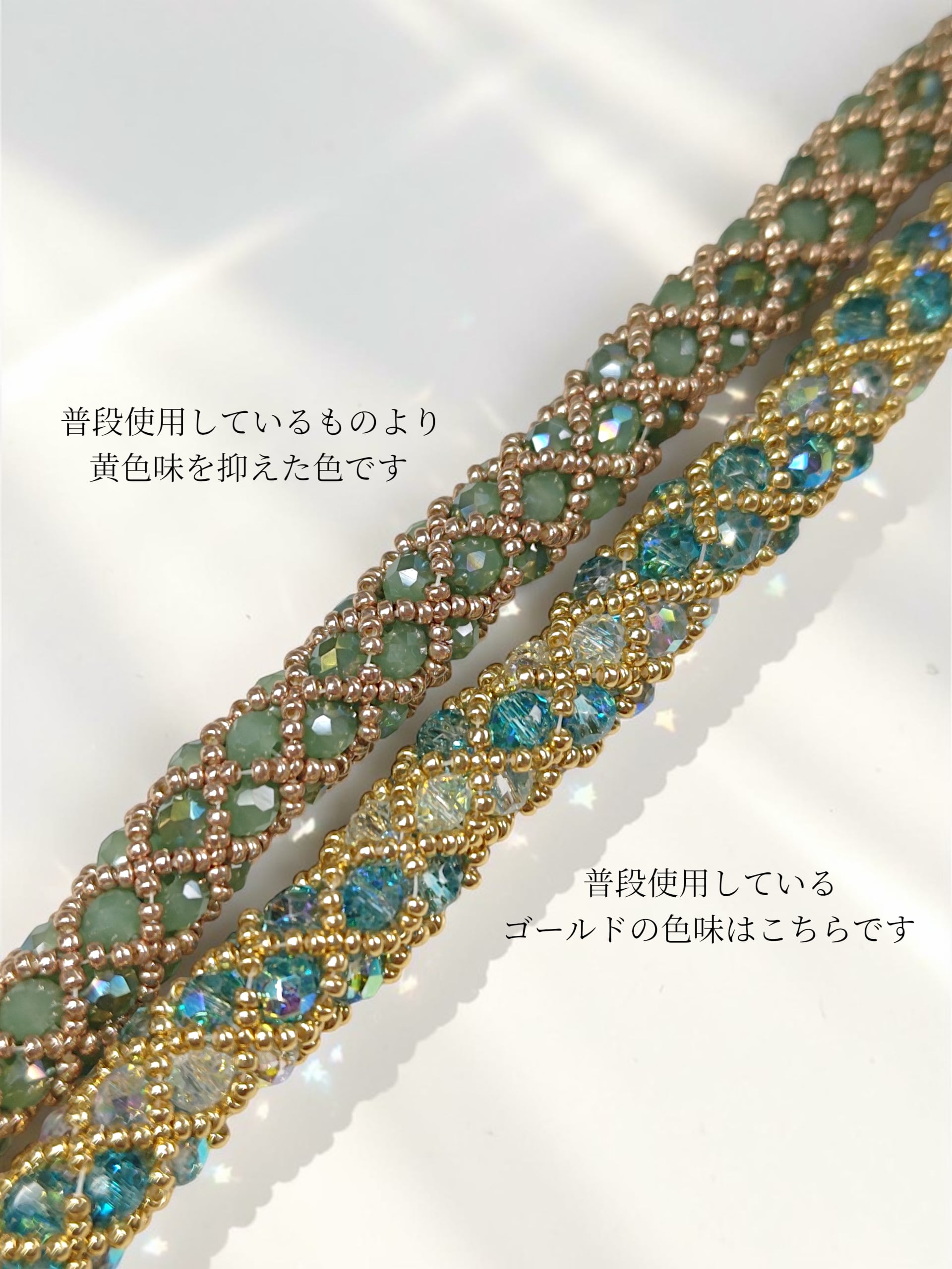 ※きっちり編んでいますので、使用上の問題はありませんが、ビーズの自体が少し動くようになっておりますので、全長の長さが少しほど前後いたします。ご了承ください。