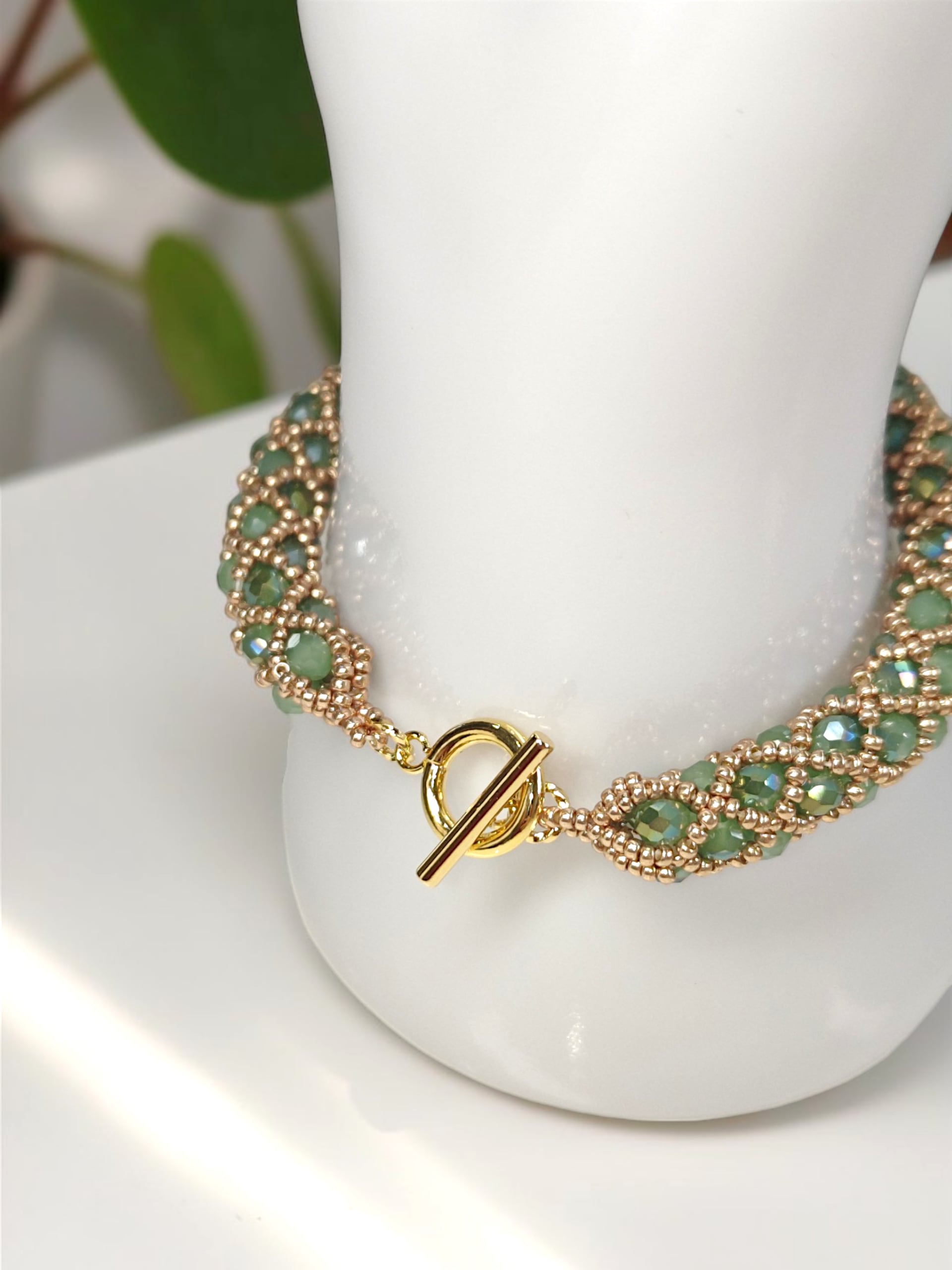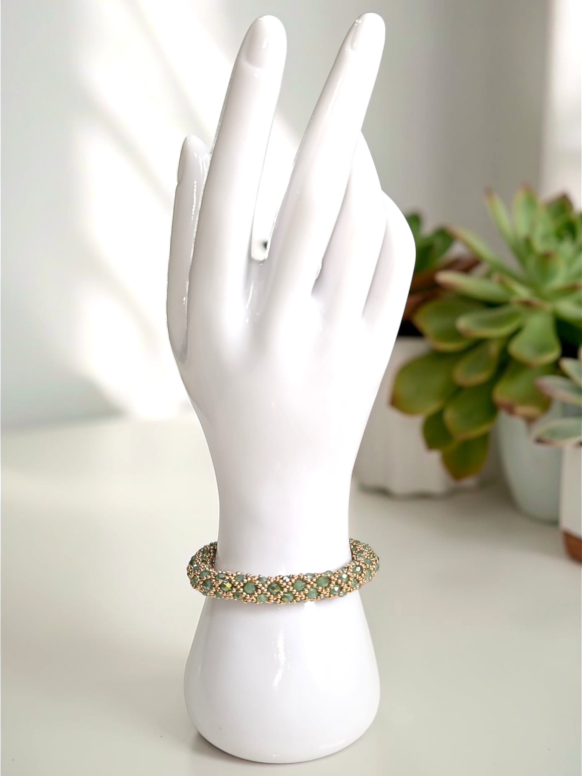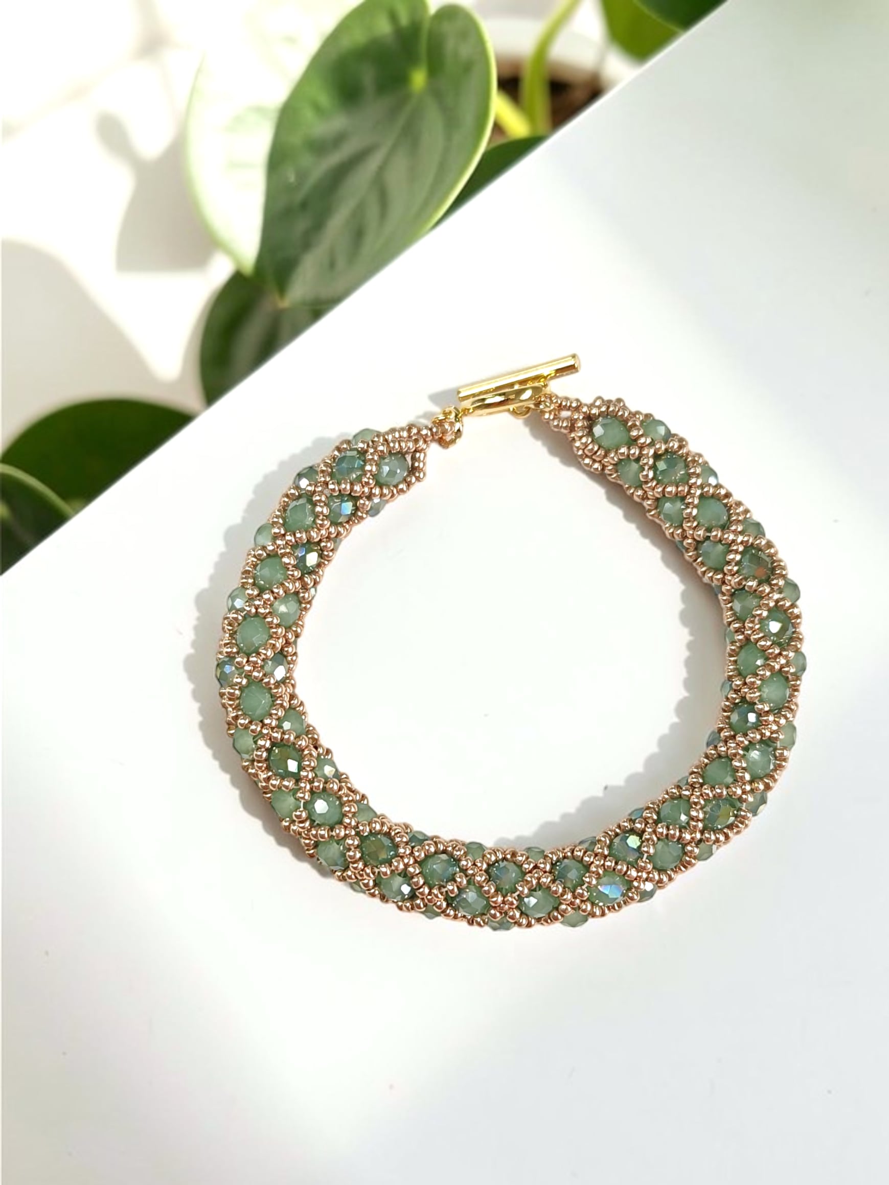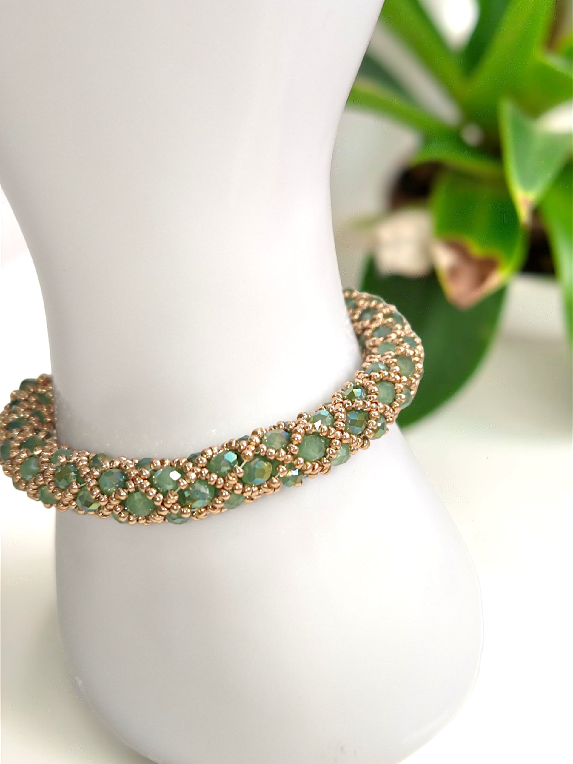 ※きっちり編んでいますので、使用上の問題はありませんが、ビーズの自体が少し動くようになっておりますので、全長の長さが少しほど前後いたします。ご了承ください。